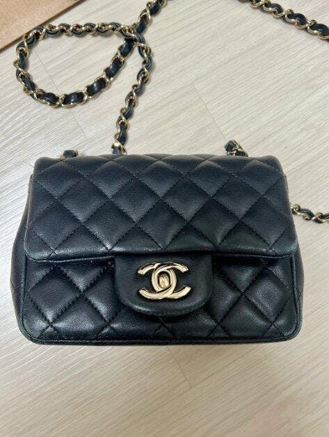 샤넬 쁘띠삭 미니 클래식 플랩백 램스킨 블랙/금장