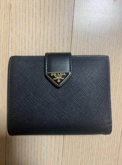 프라다 사피아노 및 가죽 반지갑 블랙 1MV204