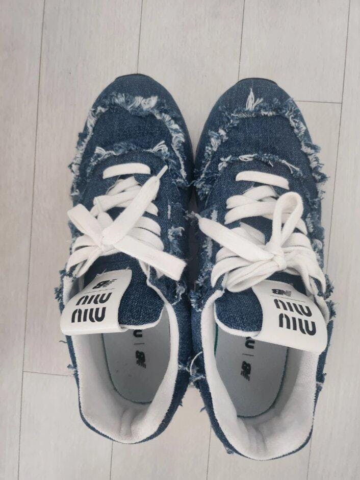 미우미우 X 뉴발란스 574 데님 스니커즈 블루