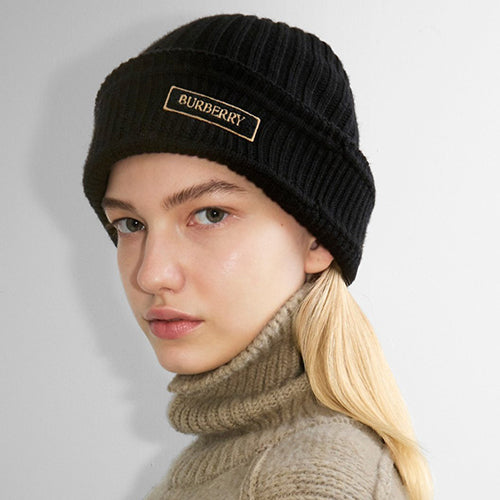 [국내배송] 버버리 로고 자수 골지 비니 블랙