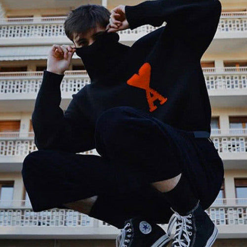 아미 빅하트 로고 인타르시아 터틀넥 니트