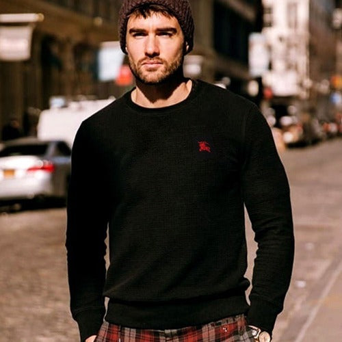 버버리 로고 자수 맨투맨 블랙