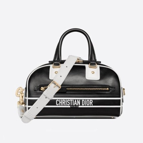 실용적으로 결합된 디올 바이브 스몰 지퍼 볼링백입니다