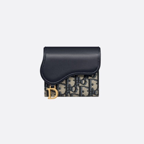 디올 오블리크 자카드 가죽 새들 로터스 반지갑