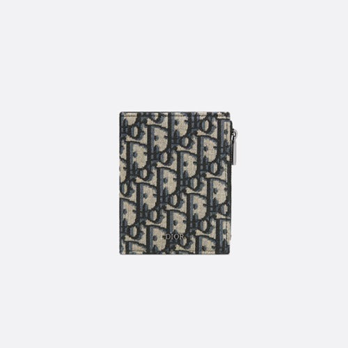 디올 오블리크 버티컬 컴팩트 카드 지갑 베이지/블랙