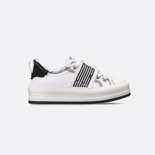 디올 워크 앤 플랫폼 스니커즈 프린지 코튼 화이트