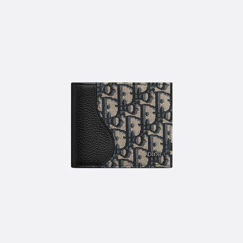 디올 오블리크 자카드 새들 반지갑 베이지/블랙