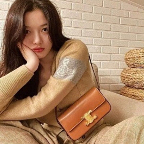 고급스러운 카프스킨 가죽과 셀린느 트리오페 라인의 시그니처인 골드톤 잠금장치가 포인트입니다
