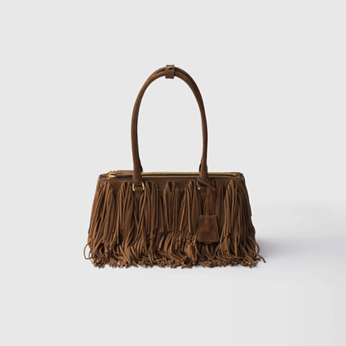 프라다 프린지 갤러리아 미디엄 스웨이드 백 1BA457