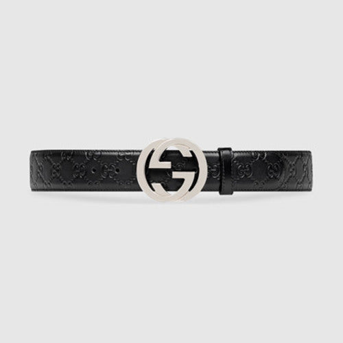 구찌 인터로킹 G 버클 시그니처 벨트 블랙 (그레이,허성운 착용)