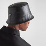 [국내배송] 프라다 삼각 로고 레더 버킷햇 블랙