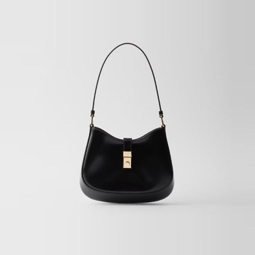 프라다 클라스프 클로저가 달린 브러시드 가죽 숄더백 블랙