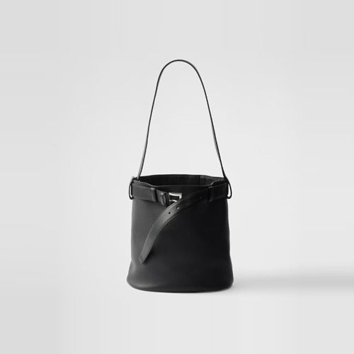 프라다 벨트가 달린 버클 가죽 버킷백 블랙 1BE085
