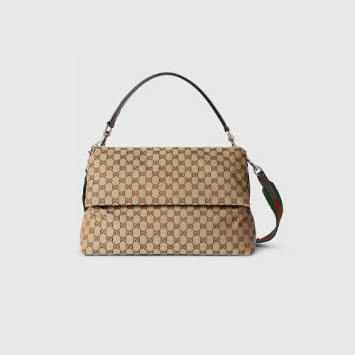 베이지/다크 브라운 GG 캔버스 버전의 크로스백으로