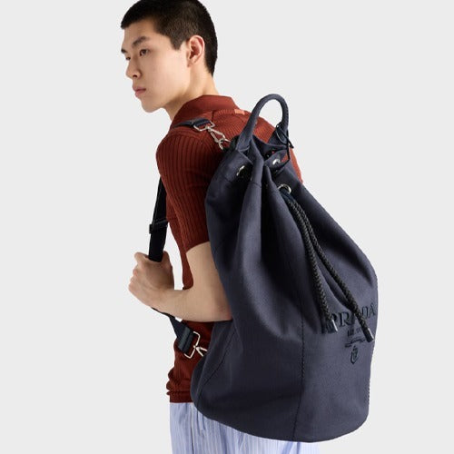프라다 캔버스 드로스트링 더플백 네이비 2VY011