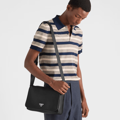 프라다 트라이앵글 로고 가죽 숄더백입니다