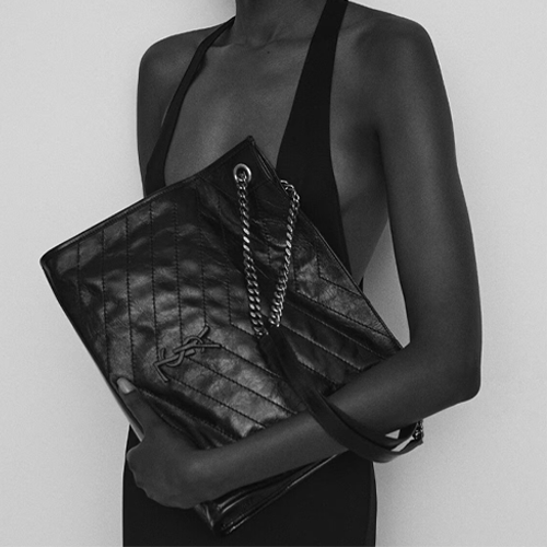 세인트로랑 빈티지 가죽 니키 쇼핑백 블랙