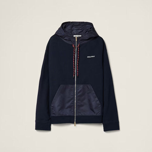 미우미우 코튼 플리스 지퍼 후드 자켓 블랙