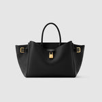 골드 색상의 패드락 장식과 양옆의 조절형 버클,