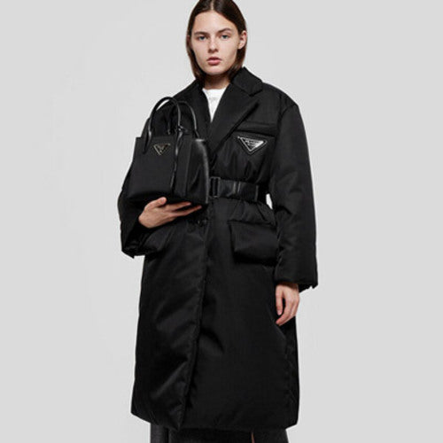 프라다 리나일론 개버딘 푸퍼 벨트 롱패딩 코트