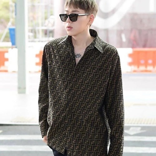 오버한 실루엣과 FF 모티프 패턴의 위치 및 간격,