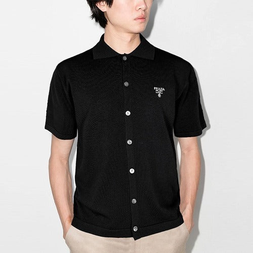프라다 밀라노 로고 니트 반팔 가디건 블랙