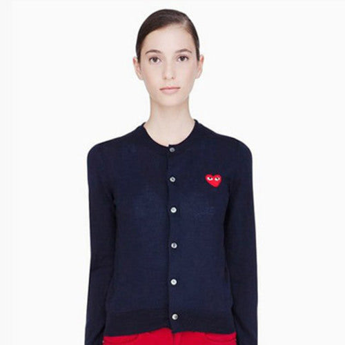 [국내배송/당일출고] 꼼데가르송 라운드 여성용 가디건 네이비/레드와펜