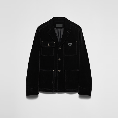 프라다 삼각 로고 벨벳 데님 블루종 GEB276