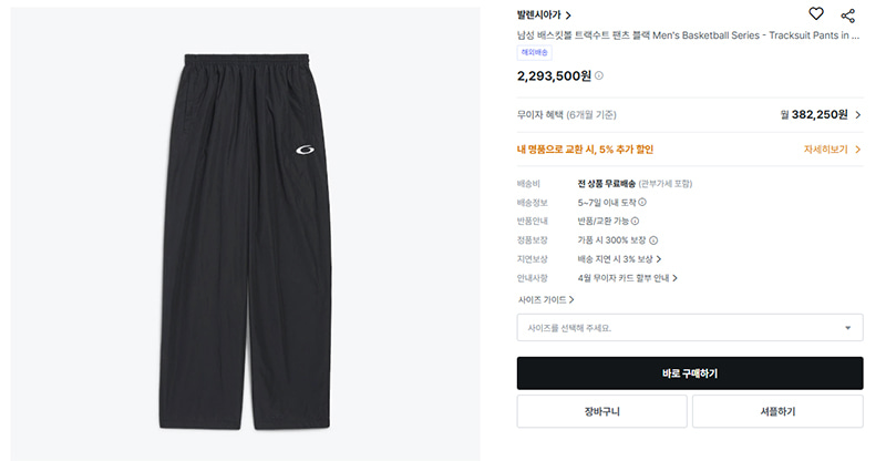 발렌시아가 바스켓볼 시리즈의 팬츠입니다