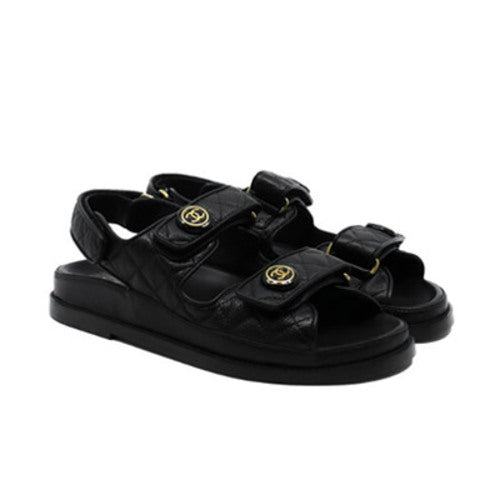 21SS 샤넬 CC 버튼 로고 벨크로 가죽 샌들