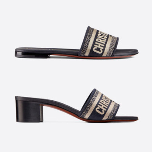 디올 디웨이 블루 오블리크 자수 코튼 뮬