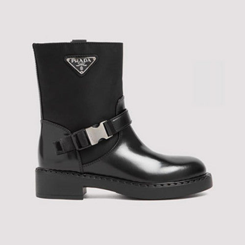 21FW 프라다 트라이앵글 로고 레더 버클 부츠