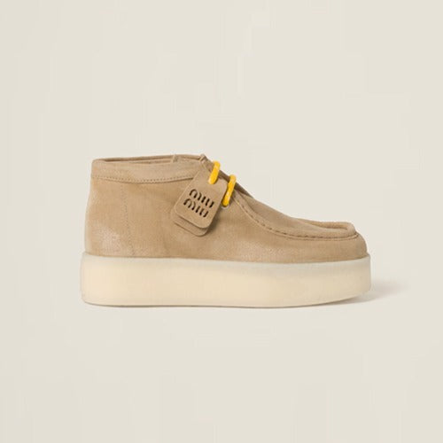 미우미우 스웨이드 델라베 웨지 앵클 부츠입니다