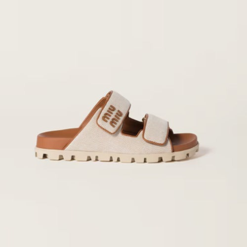 미우미우 캔버스 슬라이드 베이지 5XX658