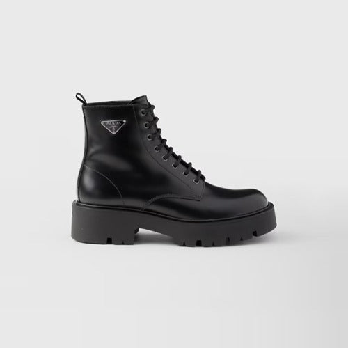 프라다 브러시드 가죽 컴뱃 부츠 블랙 2TG242