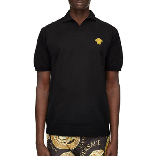 21SS 베르사체 메두사 로고 자수 니트 반팔 카라티 출시되었습니다