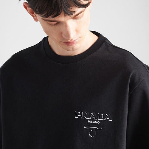[국내배송] 프라다 프린티드 레터링 로고 반팔티 블랙