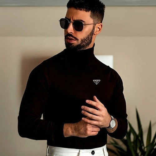 프라다 사피아노 삼각 로고 터틀넥 블랙