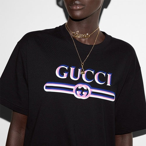 구찌 특유의 감성을 담은 배색 로고 프린트로