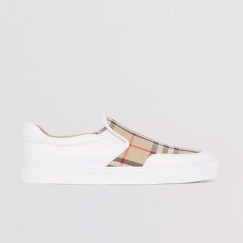 버버리 레더 빈티지 체크 슬립온 스니커즈 화이트