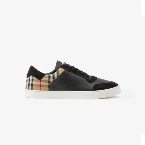버버리 레더 스웨이드 체크 스니커즈 블랙
