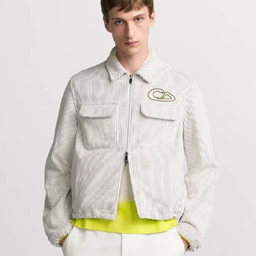 디올 X 카우스 지퍼 블루종 재킷 화이트