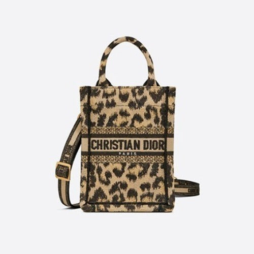디올 북 토트 미니 휴대폰 백 레오파드 베이지