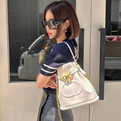 디올 체스트 디올 레더 미디움 버킷백 화이트 (기은세 착용)