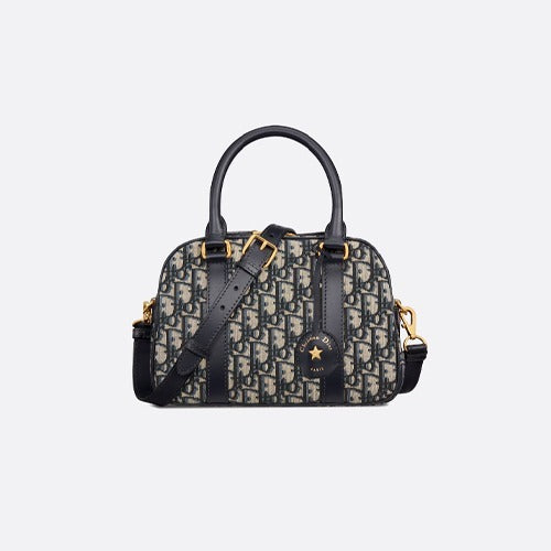 디올 디 바이브 미디엄 볼링백 베이지/블루 (지수 착용)