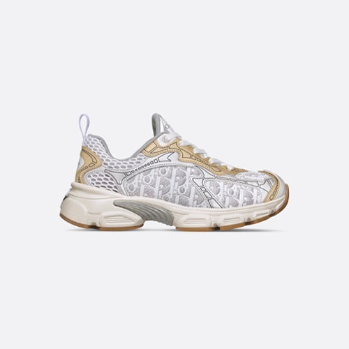 디올 메시 및 가죽 바이브 스니커즈 화이트/골드