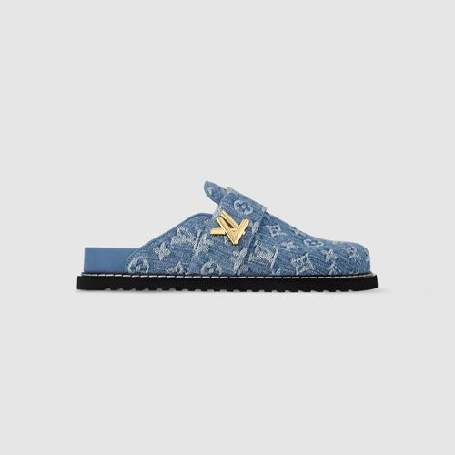 루이비통 데님 LV 코지 플랫 컴포트 뮬 블루 1AGVOO