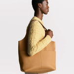 탈착식 지퍼 파우치가 특징이며 가죽 탑 핸들을 활용해