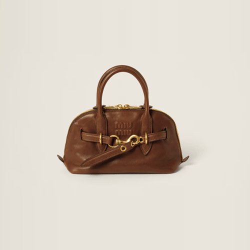 미우미우 아방뛰르 나파 가죽 스몰 탑 핸들백 브라운 5BB169