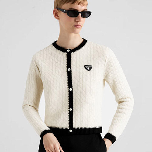 [국내배송] 프라다 배색 케이블 니트 가디건 2color